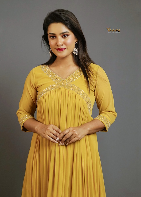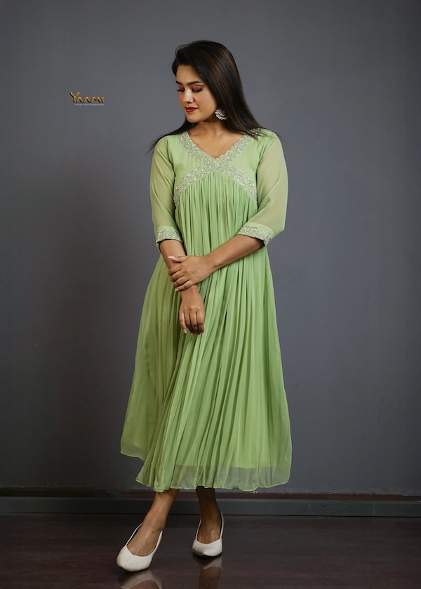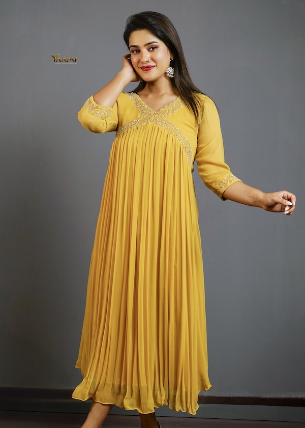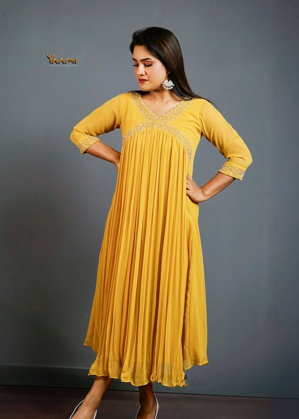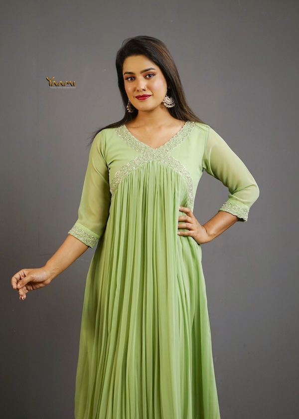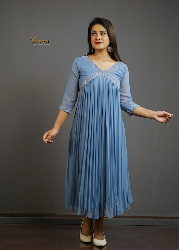 - In a beautiful shades, the alia cut kurta in foux georgette fabric speaks of subtle elegance in its delicate handwork details on yoke and sleeves.