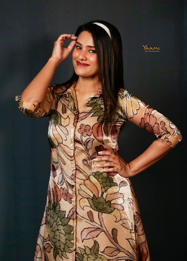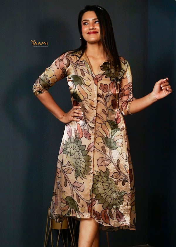 Elegant and timeless in a soft chickoo shade, this piece is crafted from digital printed Fendi fabric with a smooth finish and graceful fall. The subtle sheen and earthy tone add a refined touch, making it perfect for both everyday elegance and special moments.