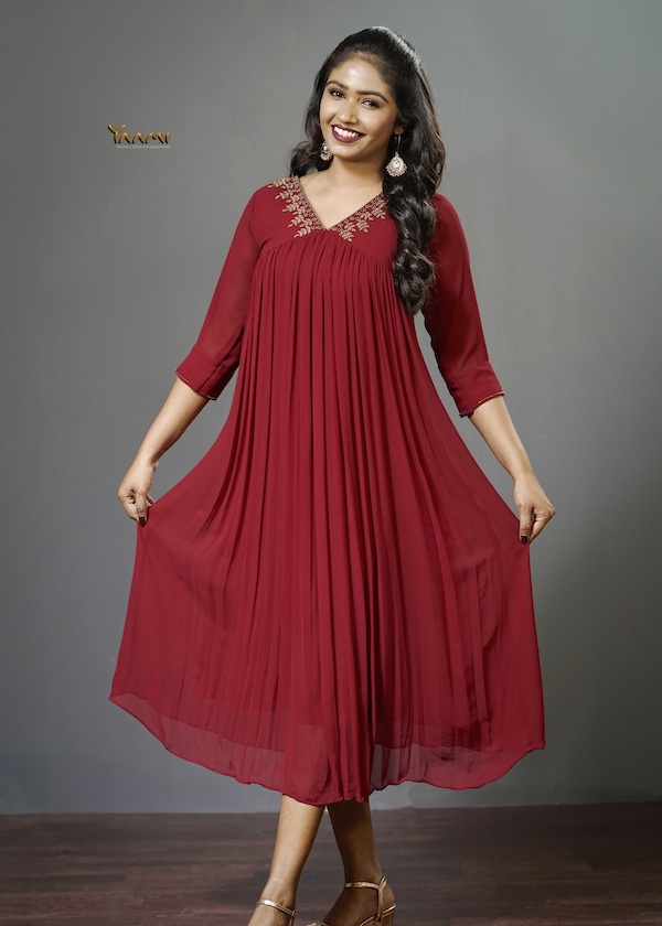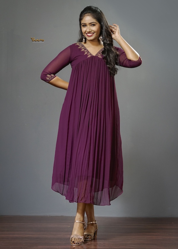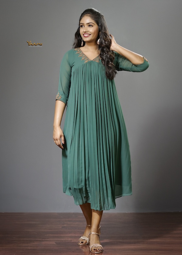 - Elegant georgette kurthi with hand embroidery, crafted from lightweight,flowy fabricthat drapes beautifully for a flattering silhouette. adorned with intricate hand embroidery, each details showcase fine craftmanship and dedicate artistry.