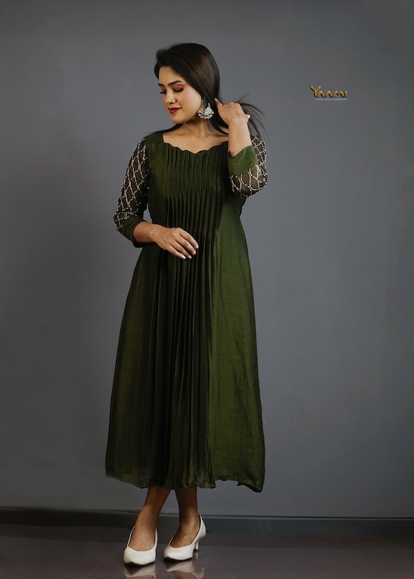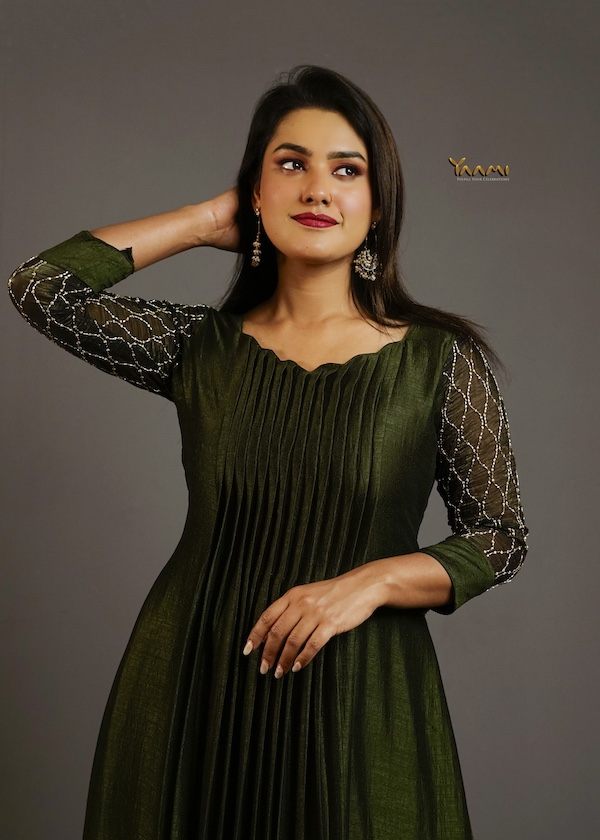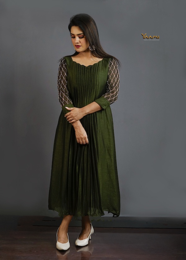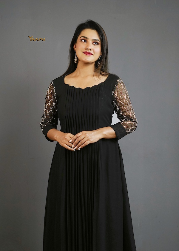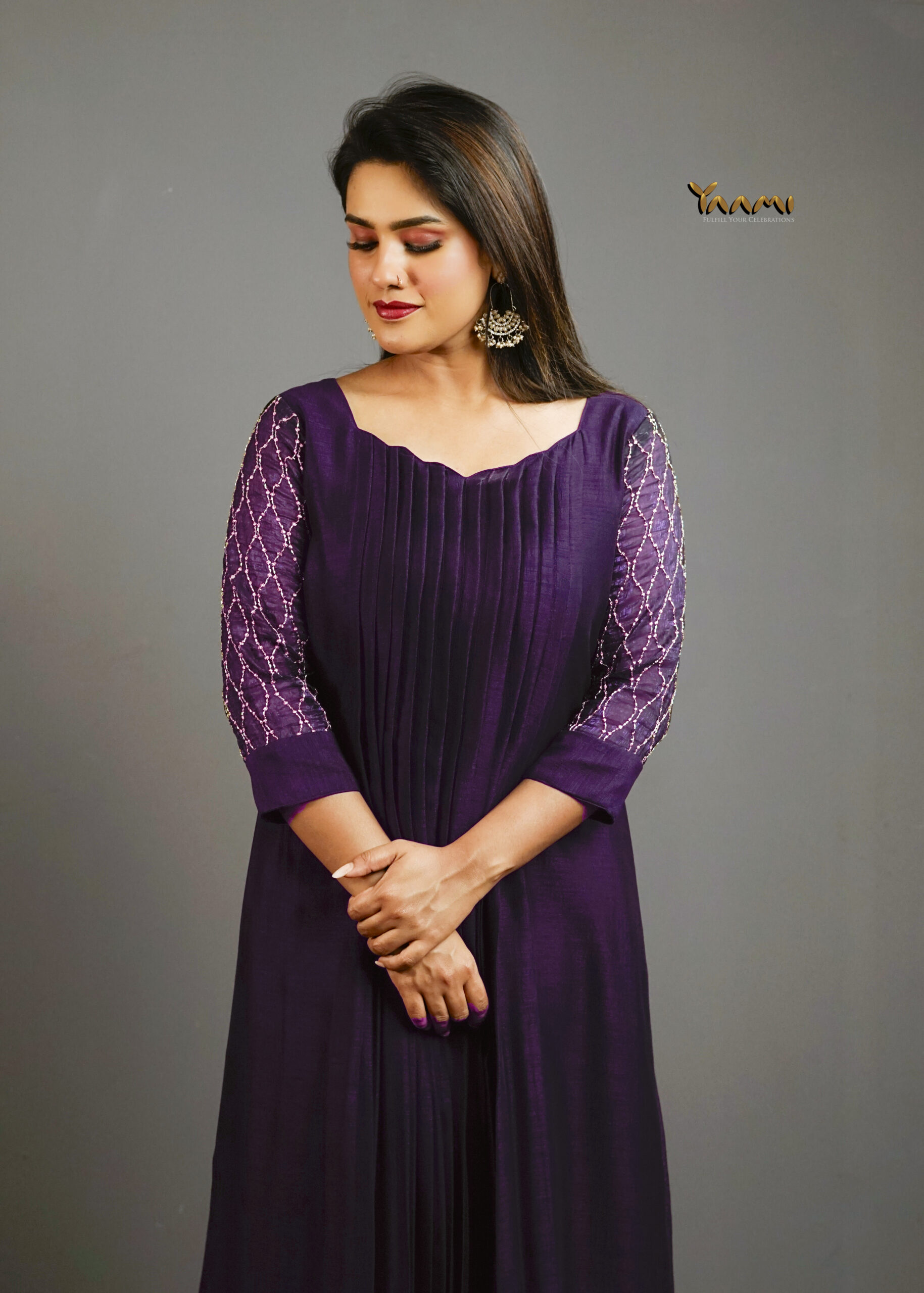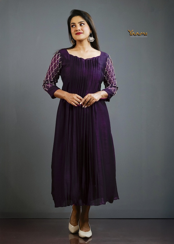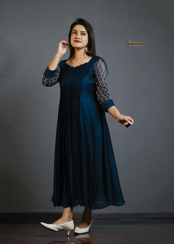 - Its embellished with cutbead work on sleeves and it’s creating a regal and elagant look.