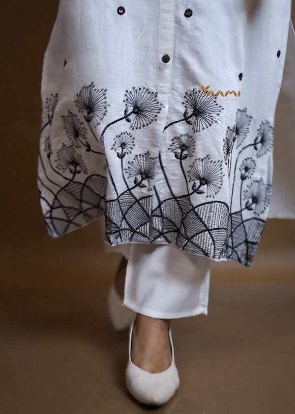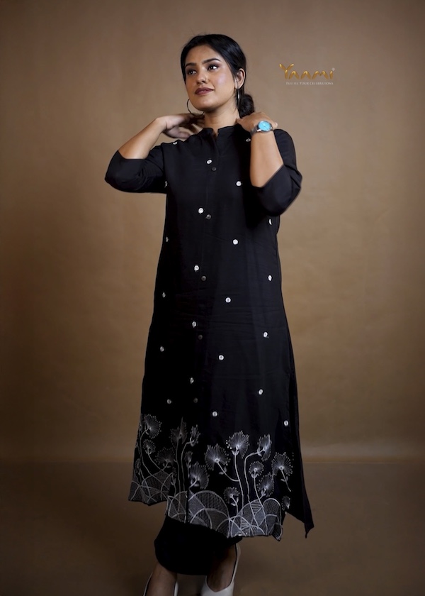 Available in Black, Yellow, White, and Onion Pink, each shade enhances the softness of the thread work, giving you options that range from classic to fresh and vibrant.