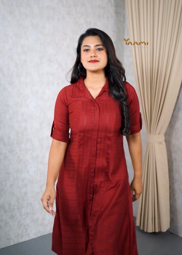 Stay effortlessly stylish and comfortable with this beautifully tailored shirt dress, crafted from soft, breathable cotton. Designed with a classic collar and subtle vertical texture, this piece offers a perfect balance of elegance and everyday ease. The relaxed fit and lightweight fabric make it an ideal choice for warm weather, keeping you cool and comfortable all day long. A versatile wardrobe essential that works perfectly for casual outings, office wear, or daily use.